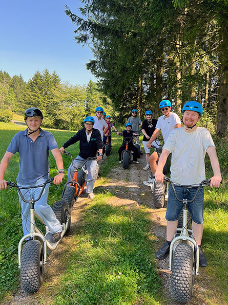 Was die Azubis dabei zeigten, war beeindruckend: Sie meisterten die Aufgaben mit Bravour, entwickelten innovative Ansätze und setzten diese mit Engagement um. „Es war faszinierend zu beobachten, wie aus individuellen Ideen durch Diskussion und Experimentieren starke Teamlösungen entstanden“, fasst ein Organisator zusammen. Und neben all der Ernsthaftigkeit kam der Spaß nicht zu kurz – Lachen hallte durch die Wälder und Stolz über jede gemeisterte Hürde, schweißte die Gruppe enger zusammen. Als Highlight ging es nach dem Erreichen der Wasserkuppe mit den Monsterrollern hinunter ins Tal bis nach Poppenhausen. Die rasante Abfahrt und die frische Bergluft sorgten für gute Laune und einen gelungenen Abschluss des Outdoor-Teils. Den ereignisreichen Tag ließen unsere Auszubildenden bei einem gemütlichen Essen ausklingen, bei dem sie ihre Erlebnisse austauschten, reflektierten und neue Freundschaften festigten.